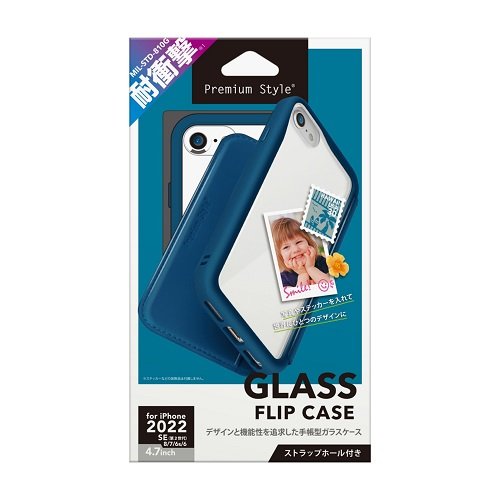 PGA iPhone SE 第3世代 ガラスフリップケース ネイビー PG22MGF03NV