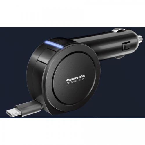 多摩電子工業 12V/ 24V車対応 Type-C カーチャージャー ケーブル巻き取りタイプ 最大出力3A TKC04CK