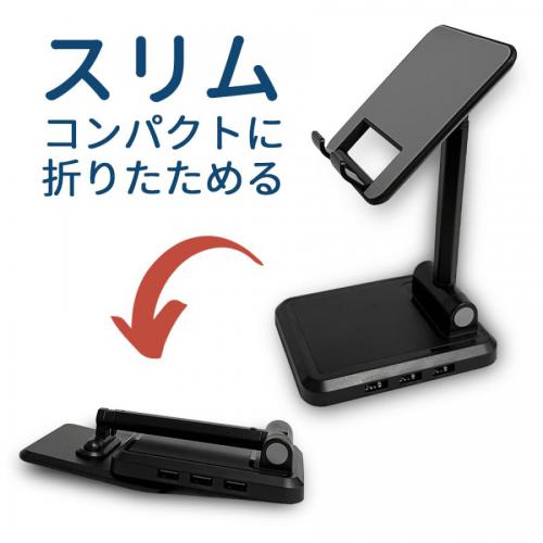 エアージェイ air-J USBハブ付き折りたたみスリムスタンド ホワイト ATST-HUB1WH