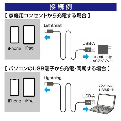 ■iPhone、iPad Pro、iPad Air、iPad、iPad mini、iPod対応 充電・データ通信ができるLightning USBケーブルです。