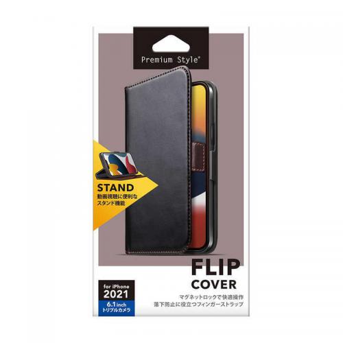 PGA iPhone 2021 6.1inch 3眼 フリップカバー ブラック Premium Style PG-21NFP02BK