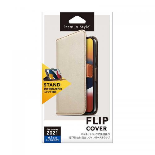 PGA iPhone 2021 6.1inch 3眼 フリップカバー Premium Style ベージュ PG-21NFP05BE
