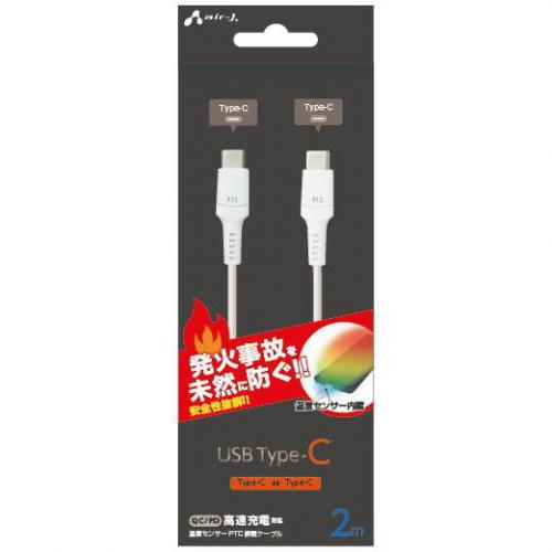 エアージェイ air-J 発火を防ぐ温度センサーPTC搭載 Type-C 充電通信ケーブル 2m ホワイト UKJ-PCTC2M