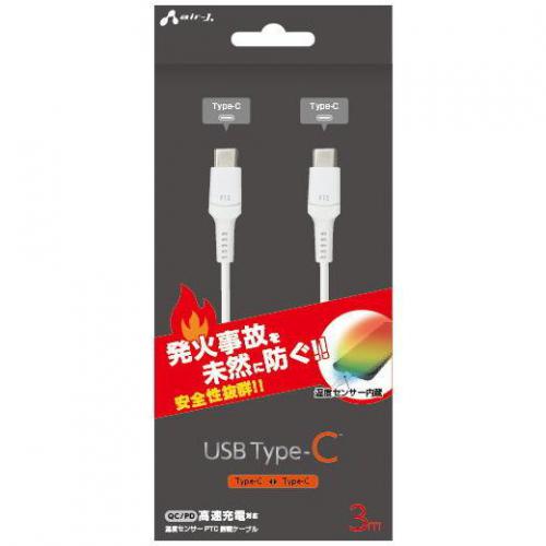 エアージェイ air-J 発火を防ぐ温度センサーPTC搭載 Type-C 充電通信ケーブル 3m ホワイト UKJ-PCTC3M