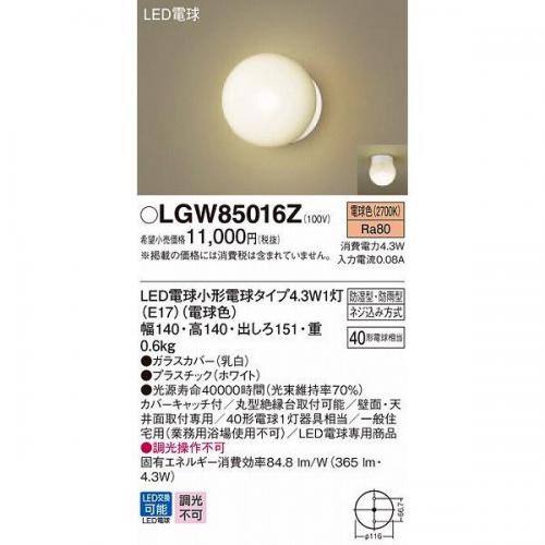 パナソニック Panasonic ポーチライト 浴室灯 外玄関 LGW85016Z