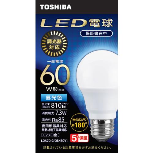東芝 TOSHIBA LED電球 E26 60W相当 昼光色 配光角180°調光器対応 LDA7DG/DSK60V1
