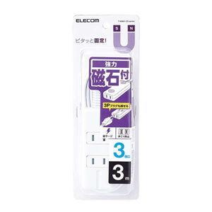 エレコム ELECOM 磁石タップ3個口 3m スタンダード雷ガード ホワイト T-KM01-2330WH