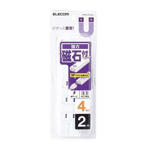 エレコム ELECOM 磁石タップ4個口 2m スタンダード雷ガード ホワイト T-KM01-2420WH
