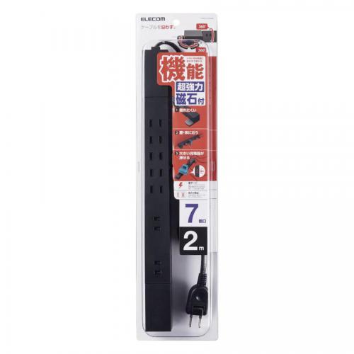 エレコム ELECOM 高機能磁石タップ 7個口 2.0m ブラック T-KF02-2720BK