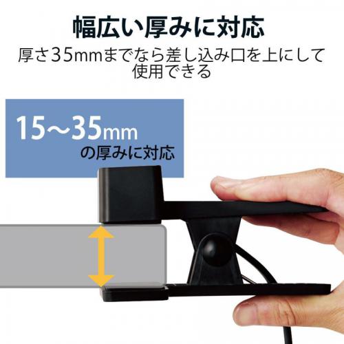 クリップ機構を搭載し、机などに挟んで利用することができる2ピン式の3個口タップです。