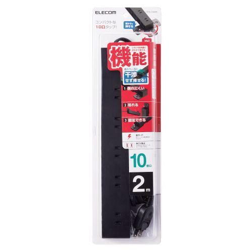 エレコム ELECOM 回転脚付上面5口+側面5口タップ 10個口・2m ブラック KF04-21020BK