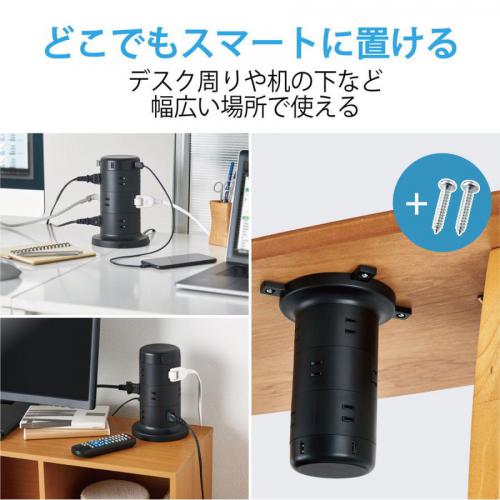エレコム ELECOM タワー型タップ 12個口+USB 5ポート・2m ブラック TT-U02-1220BK