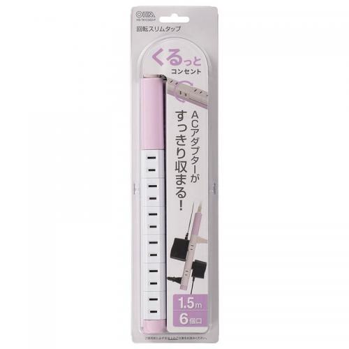 オーム電機 OHM 回転スリムタップ 6個口 1.5m ピンク HS-T61C5S3-P