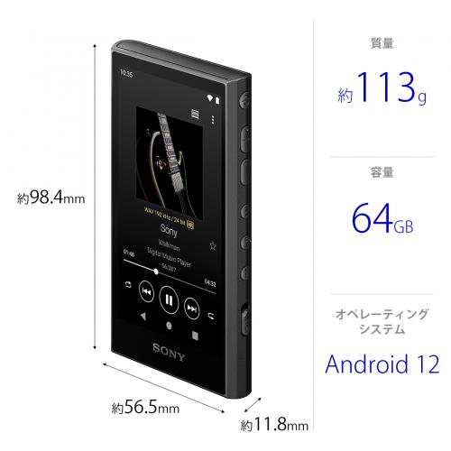 ソニー SONY ポータブルオーディオプレーヤー Walkman(ウォークマン) A300シリーズ 64GB Android 12搭載 ハイレゾ音源対応 ブラック NW-A307 B