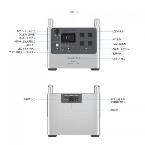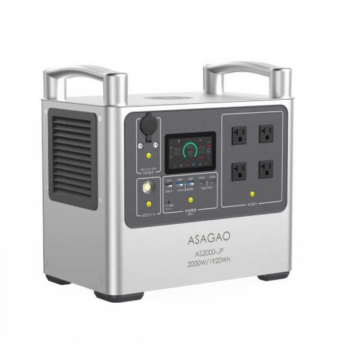 ASAGAO JAPAN リン酸鉄 ポータブル電源 大容量・高出力・超高速充電 シルバー AS2000-JP