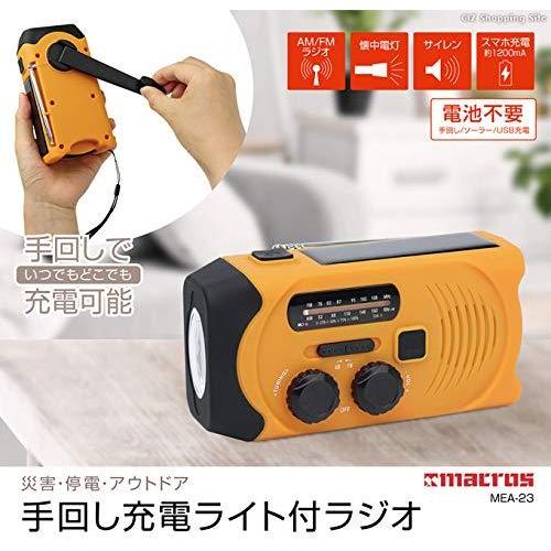 マクロス Macros 防災ラジオ 手回し 充電 ライト付き スマホ充電 USB充電 ソーラー充電 MEA-23