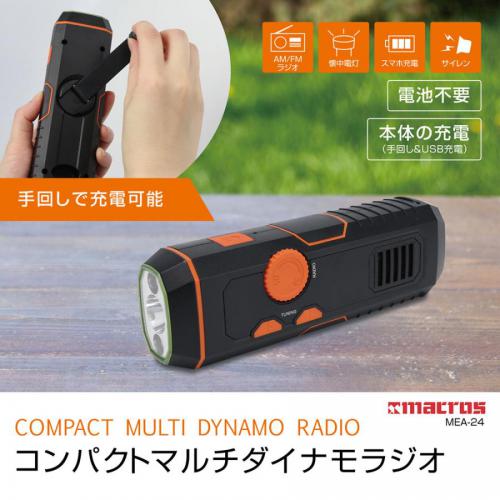 マクロス Macros コンパクトマルチダイナモラジオ 手回し充電ラジオ 懐中電灯 スマホ充電 MEA-24