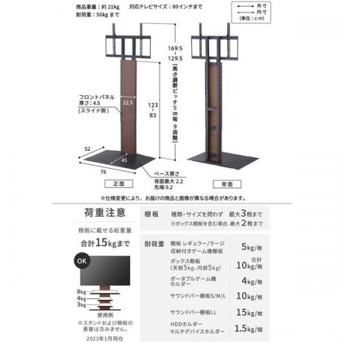 テレビの大型化に対応して80インチまでのサイズに対応(総耐加重50kgまで)。