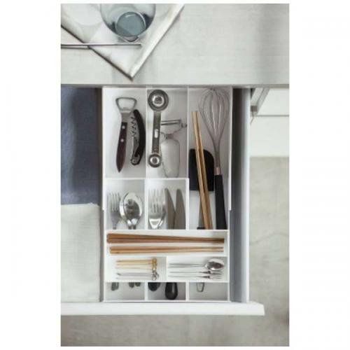 ●スプーン、フォークはもちろん、伸縮することで菜箸やフライ返し、泡立て器といった長さのあるキッチンツールも収納できます。