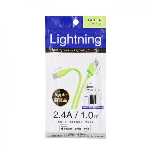 藤本電業 iPhone充電ケーブル ライトニング USB Type-A 1.0m PVC素材 グリーン CK-L08GR