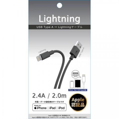 藤本電業 MFiライトニング 2.4A 充電通信ケーブル 2m グレー CK-L11GY