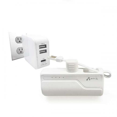 エアージェイ air-J USB-Cコネクター内蔵 モバイルバッテリー 5000mAh MBT5000C-WH