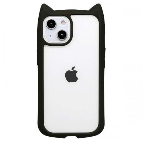 ラスタバナナ RastaBanana iPhone 14 ・ 13用 ケース カバー ハイブリッド 猫耳 ネコミミ 背面強化ガラス 背面クリア mimi ブラック 7054IP261HB