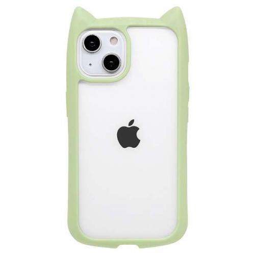 ラスタバナナ RastaBanana iPhone 14 ・ 13用 ケース カバー ハイブリッド 猫耳 ネコミミ 背面強化ガラス 背面クリア mimi リラックスグリーン 7060IP261HB