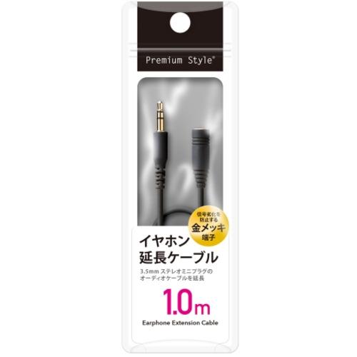 PGA ピージーエー イヤホン延長ケーブル ストレートケーブル 1.0m ブラック PG-EXS10M11BK