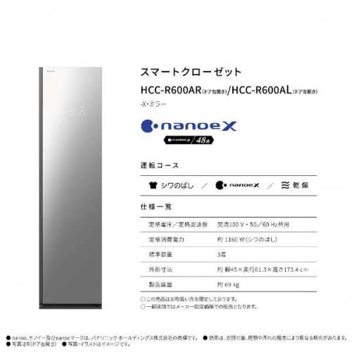 パナソニック Panasonic スマートクローゼット 箱型衣類ケア ナノイーX搭載 スチーム機能付き 左開き ミラー スマートクローゼット 箱型衣類ケア ナノイーX搭載 スチーム機能付き ミラー HCC-R600AL-X(大型)