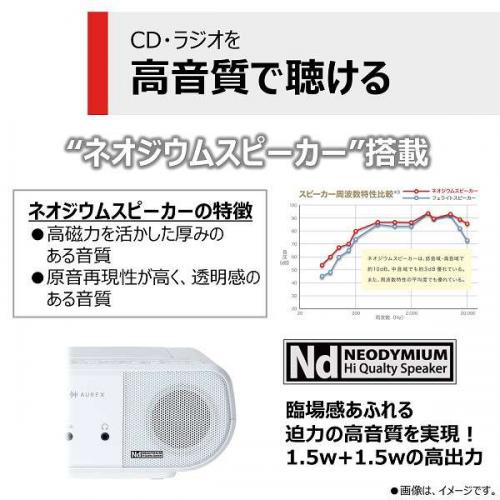 ●ネオジウムスピーカーでCD、ラジオを臨場感あふれる迫力の高音質で再生。