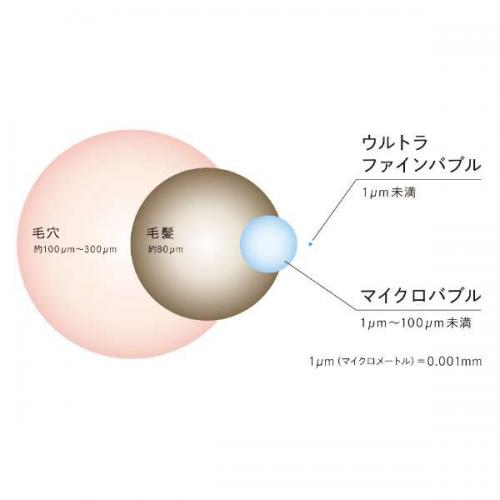 ウルトラファインバブルが毛穴の奥まで入り込んで汚れを取りのぞき、マイクロバブルが毛穴につまった大きな汚れを浮かせて取りのぞきます。