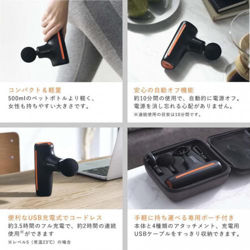 ●セット内容:パワーガン本体1台/ヘッドアタッチメント4個/ポーチ1個/充電用USBケーブル1本/取扱説明書(保証書付き)1冊