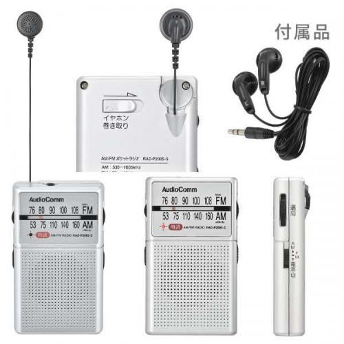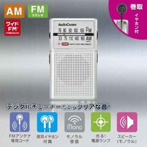 オーム電機 OHM AudioComm イヤホン巻き取りポケットラジオ AM/FM シルバー RAD-P200S-S