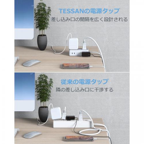 TESSAN テッサン 電源タップ 4個AC口 3USBポート 延長コード 2m TS-704-2