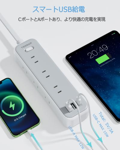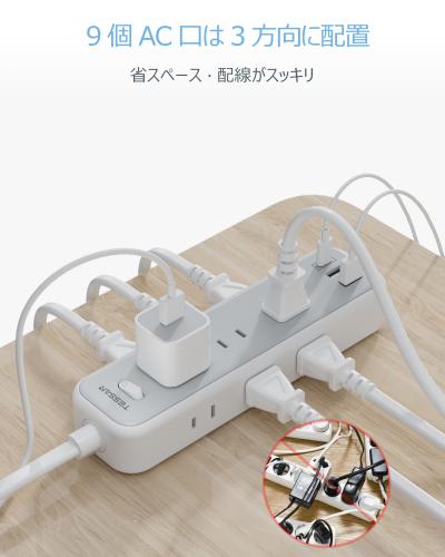 TESSAN テッサン 電源タップ USB 9個AC口 3個USBポート OAタップ たこあしコンセント 一括スイッチ付き 3m TS-709-C3