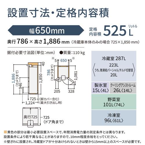 パナソニック Panasonic 冷蔵庫 525L 6ドア 観音開き ヘアラインディープブラック NR-F53CV1-K(大型)