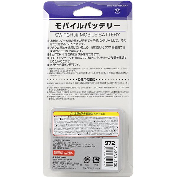 【アウトレット】ALLONE アローン Nintendo Switch用 モバイルバッテリー10000mAh ALG-NSL10K
