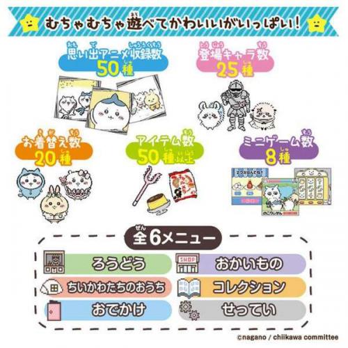 「ちいかわたちのおうち」「ろうどう」「おかいもの」「おでかけ」「コレクション」「せってい」の全6メニューです。