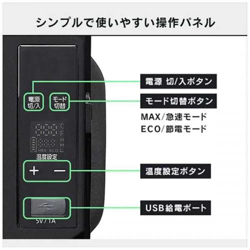 ●AC/DCの2WAY電源で、車内・自宅での使用が可能です。また、操作パネル部にUSB給電ポートが付いているので、スマホなどの充電も可能です。
