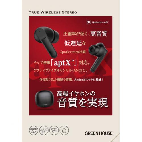 グリーンハウス GREEN HOUSE 完全ワイヤレスイヤフォン ブラック GH-TWSX-BK