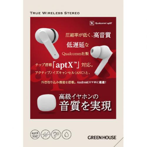 グリーンハウス GREEN HOUSE 完全ワイヤレスイヤフォン ホワイト GH-TWSX-WH