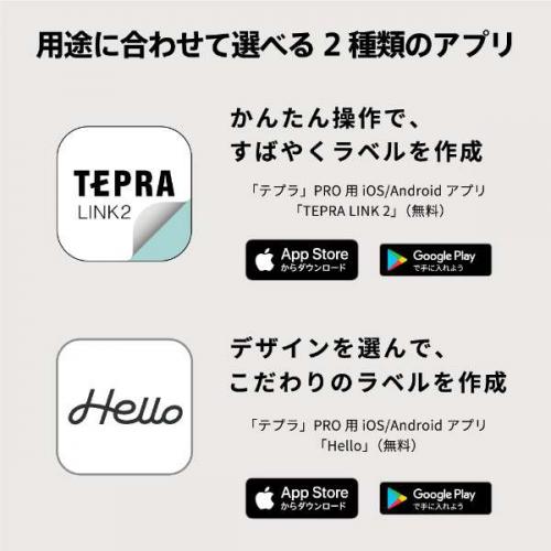 ●「テプラ」PRO用アプリ「Hello」とBluetoothで接続し、だれでも簡単におしゃれできれいなラベルを作ることができます。