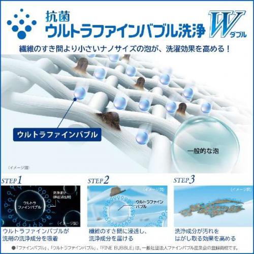 ・ナノサイズの泡が洗剤を吸着して取り除くから、すすぎと柔軟剤効果がアップ!