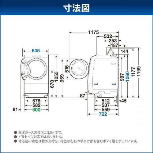 ●寸法:W64.5×H106.0×D72.2cm(給・排水ホースを含む)