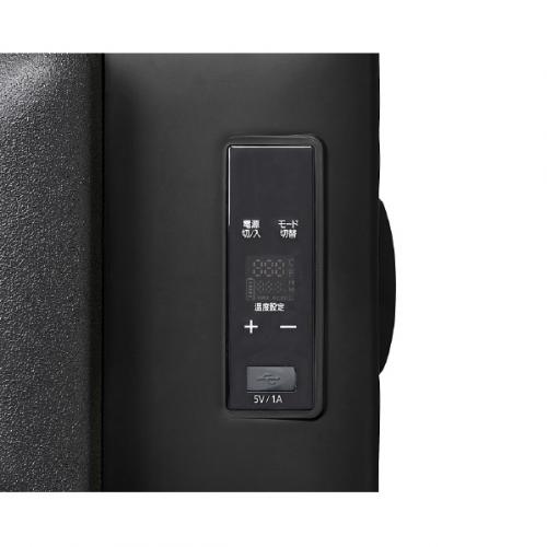 ●AC/DCの2WAY電源で、車内・自宅での使用が可能です。また、操作パネル部にUSB給電ポートが付いているので、スマホなどの充電も可能です。