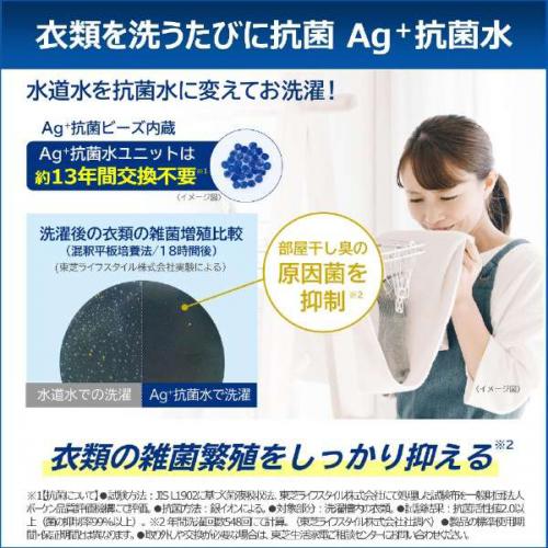 ●衣類を洗うたびに抗菌!「Ag+抗菌水」。
