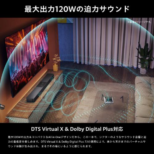 ●最大出力120WとDTS Virtual X & Dolby Digital Plus 7.1の対応により、バーチャルサウンド体験を提供。この一台でシアターのようなサラウンド音響と重低音が楽しめます。