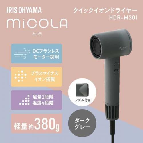 アイリスオーヤマ IRIS OHYAMA クイックイオンドライヤー MiCOLA ダークグレー HDR-M301-H