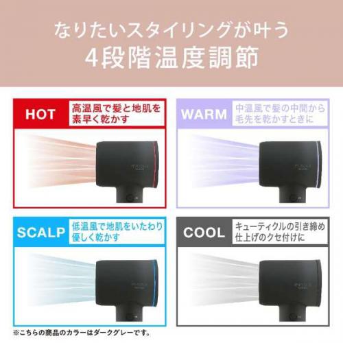 ■豊富なモード搭載!風量2段階(TURBO・SET)と温風温度4段階(HOT・WARM・SCALP・COOL)で目的に合わせて使い分けできます。